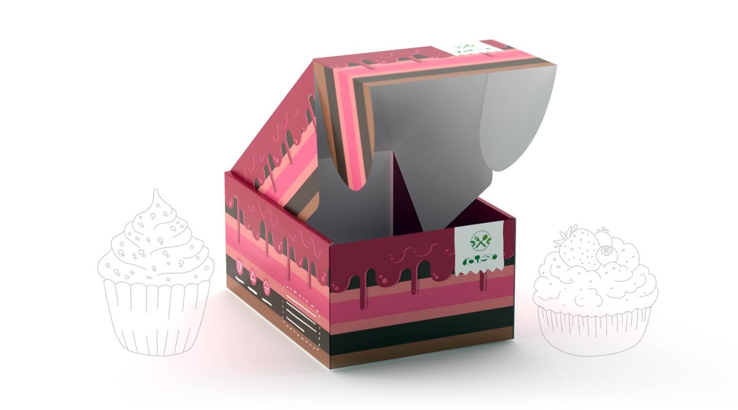 Nuestra caja con tapa abatible es ideal para empaquetar alimentos de repostería. Por ejemplo: