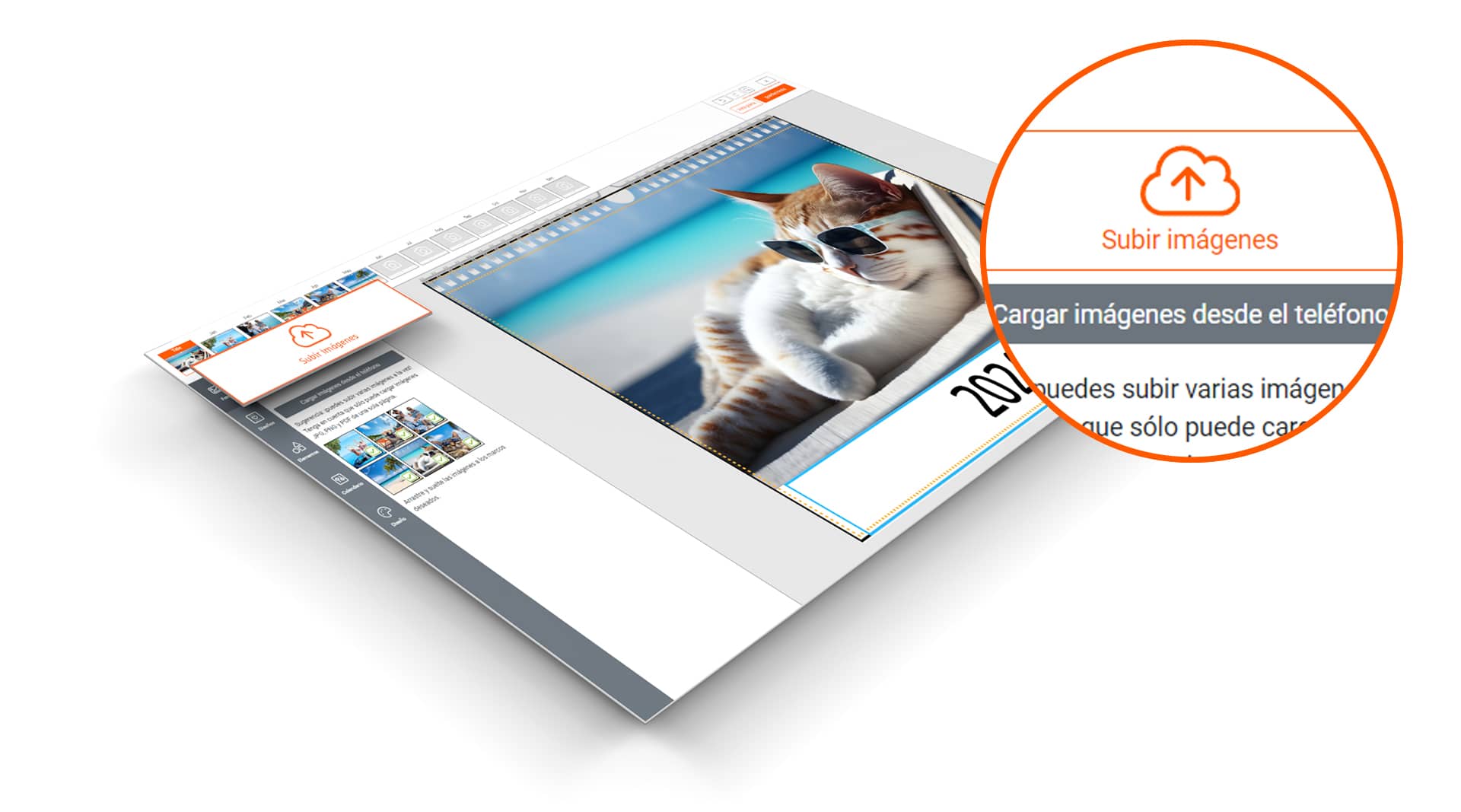 Suba las fotos al diseñador fácilmente: seleccione las fotos en su ordenador o utilice la nueva función de carga con el móvil y un código QR.