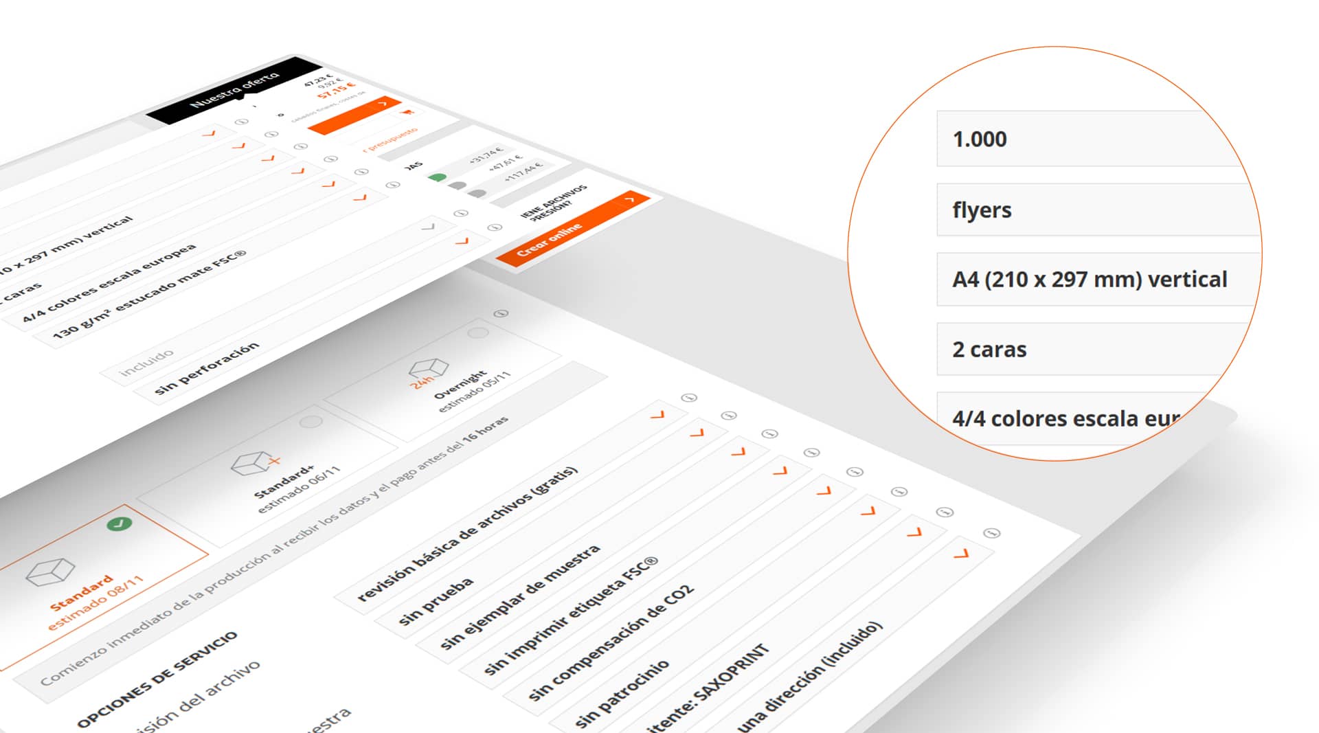 Envíenos sus archivos para impresión cualquier día laborable hasta las 18 h (en el caso de productos Overnight y Catálogos y revistas exprés hasta las 12 h) para que ese mismo día comience la producción de su producto.