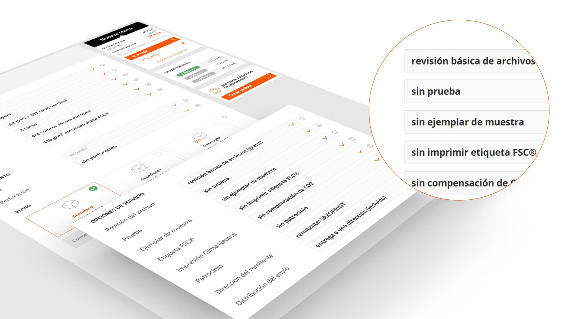 En las opciones de pedido, tiene la posibilidad de seleccionar todos los detalles relativos a su pedido.